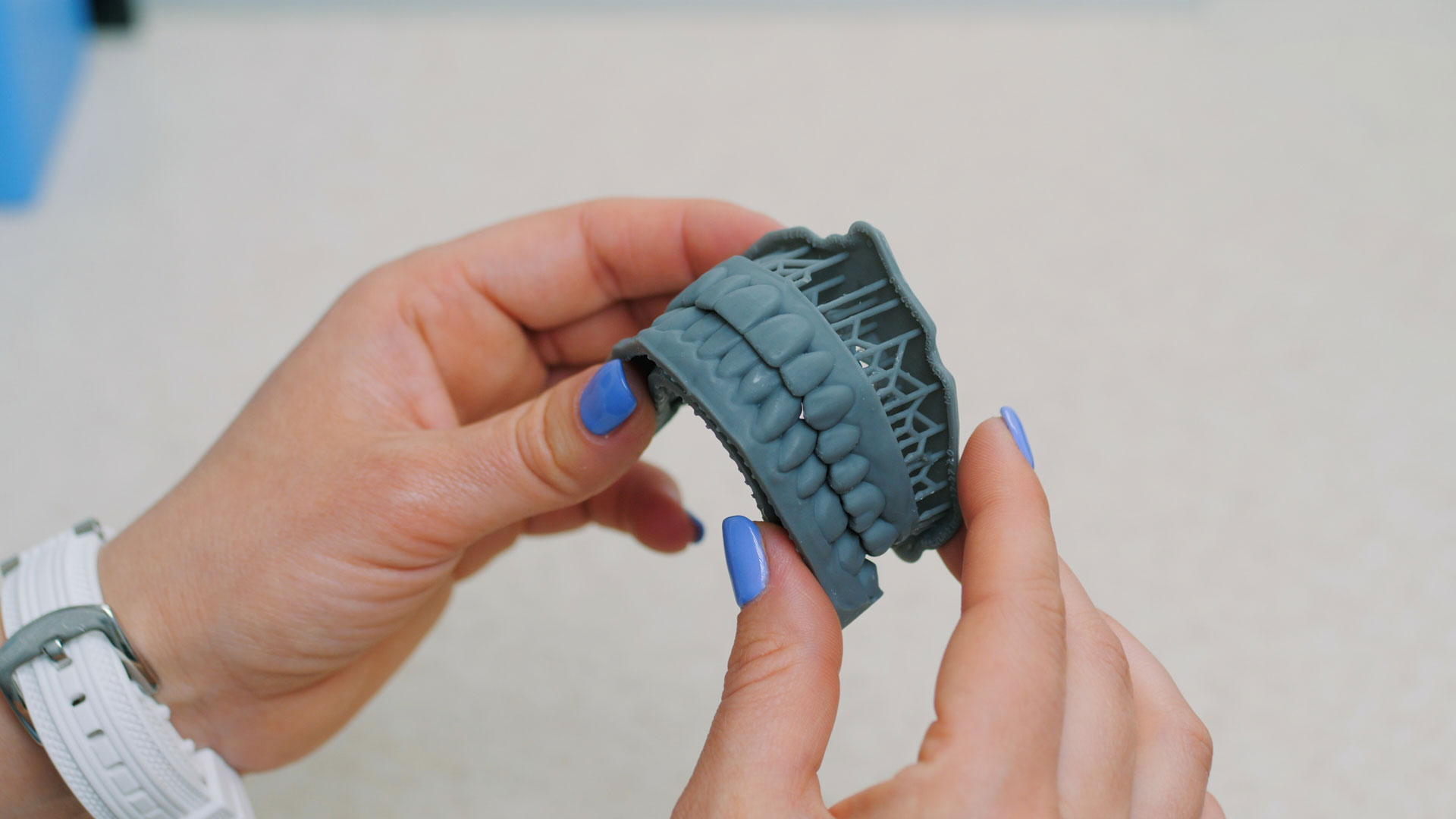 Unser 3D-Drucker vom Dental-Spezialisten SprintRay kann hochpräzise Modelle drucken, wie auch passgenaue Aufbisschienen für die Behandlung von Kiefergelenksproblemen. Sollte die Schiene doch einmal kaputt gehen, kann einfach eine neue Schiene gedruckt werden.